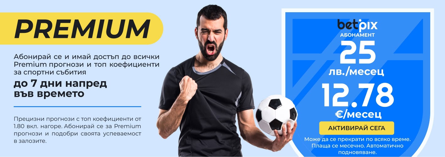 Високата успеваемост на подбраните Betipix спортни и футболни прогнози се пренася в PREMIUM пакета към коефициенти от 1.80 включително нагоре. Плод на сборния труд на нашия математически алгоритъм плюс опитни професионалисти в типстърската сфера.
