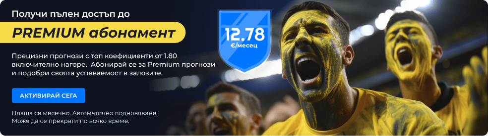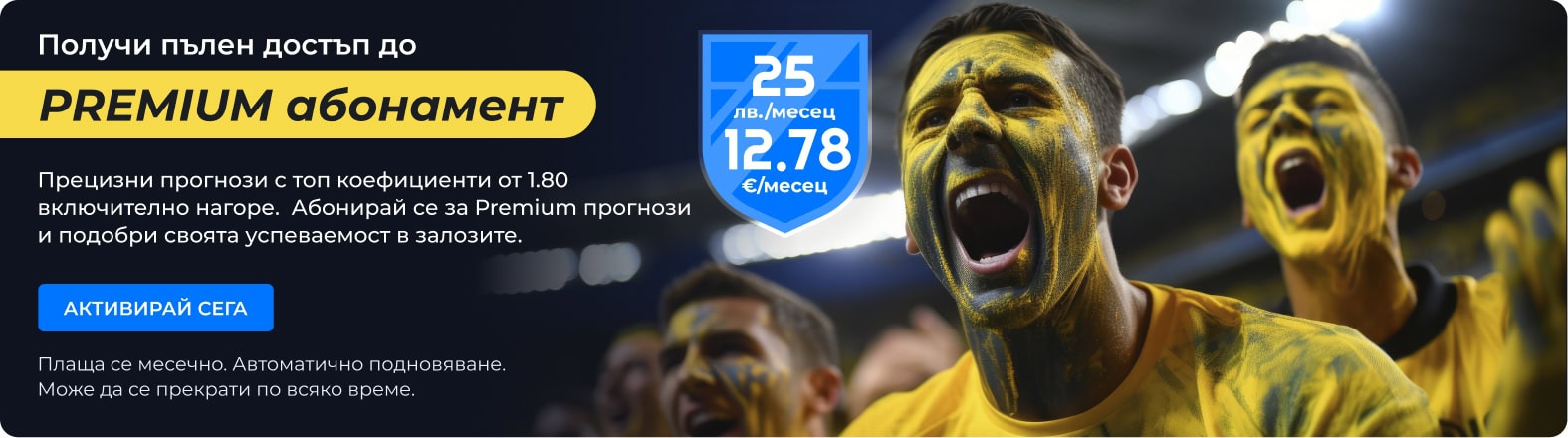 Всички наши Premium прогнози получаваш не само в сайта, но и директно в нашия Premium Telegram канал – веднага щом са публикувани. Така няма нужда да презареждаш непрекъснато сайта, за да не изпуснеш нито една прогноза.